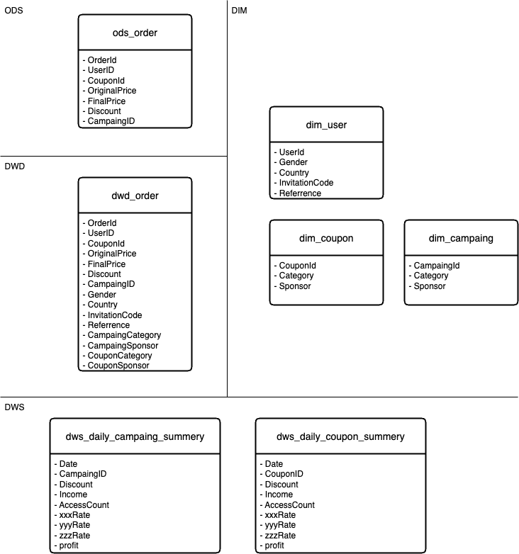 Some general dimensions can be abstracted at the ODS layer based on preliminary classification and summary of user behavior. For example, the dimensions are time, IP address, and ID. You can use these dimensions to obtain statistical data, such as the numbers of products purchased by users at different logon IP addresses in each time period. At the DWS layer, you can add multi-granularity aggregate tables on top of general aggregate tables to improve the calculation efficiency. For example, you can save a long period of time if > you evaluate user behavior based on the time interval of 7 days, 30 days, or 90 days.